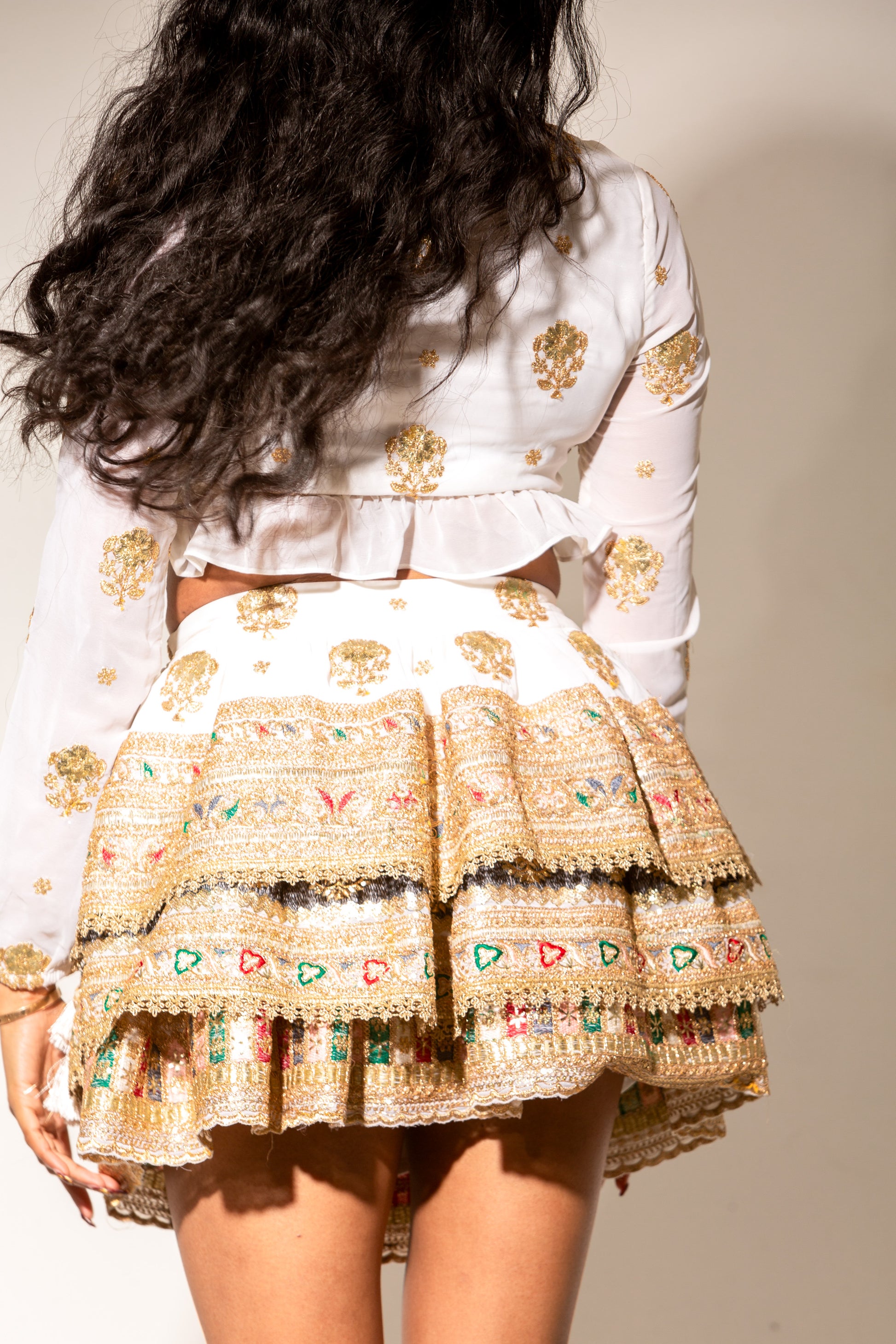 -multi-layered, gold-threaded embroidery mini lehenga- a dream to twirl in